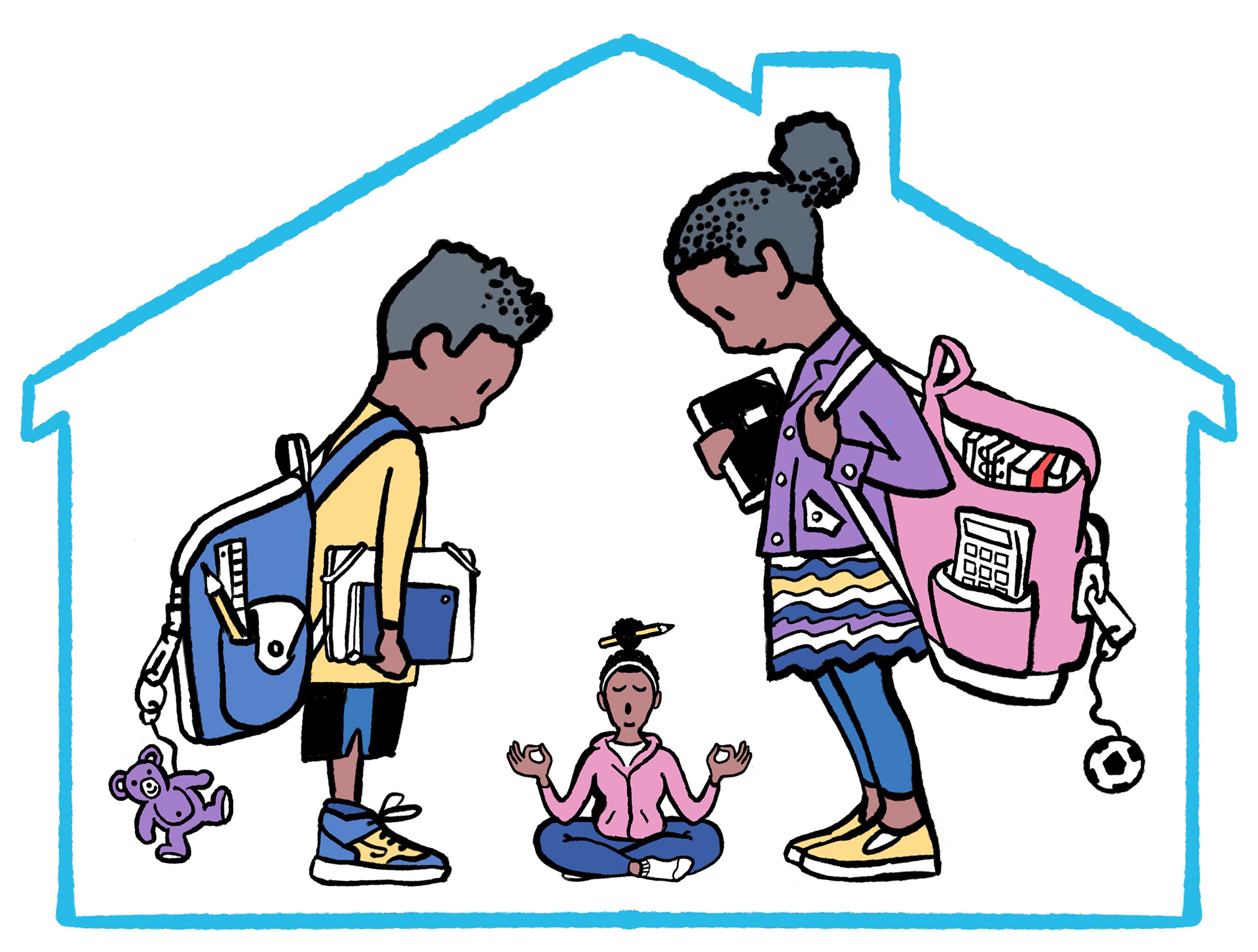 Illustrations for story about parents coping with home-schooling their kids during the pandemic. The Seattle Times.
